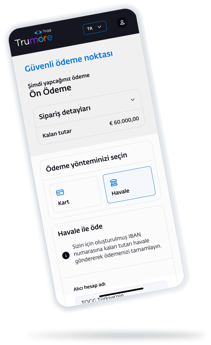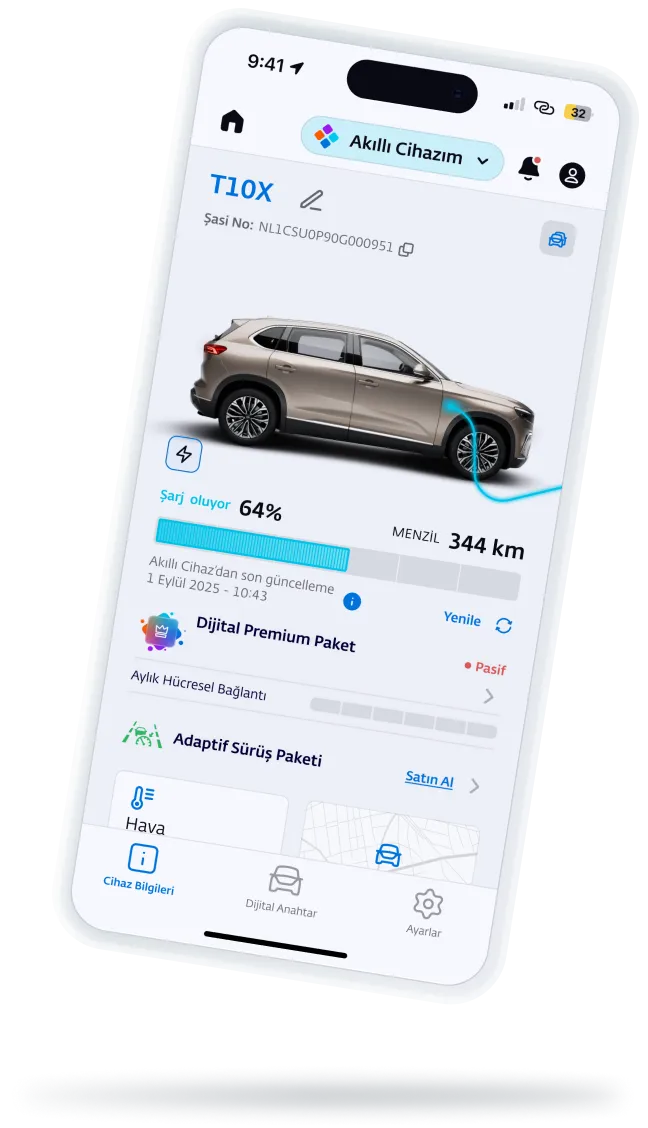 Trumore Akıllı Cihazım ile Togg akıllı cihazınızın verilerine erişebilir, yakınlarınızla da paylaşabileceğiniz dijital anahtarınızla cihazınızı başlatabilirsiniz.